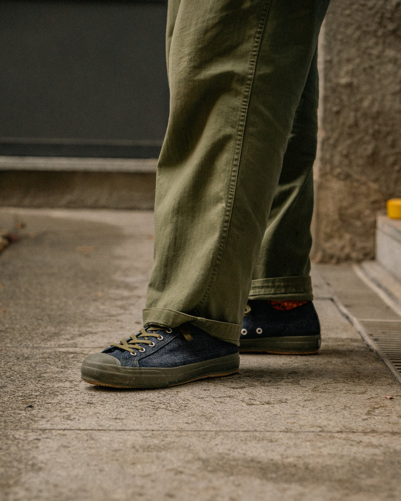 The Champion sneaker is built with traditional vulcanized construction at the renowned Moonstar factory in Kurume, Japan. Each pair features double-thick vulcanized soles, reinforced edges, and double stitching at every stress point. The result is a shoe that combines rugged durability with refined craftsmanship, ready for everyday wear or any adventure ahead.
